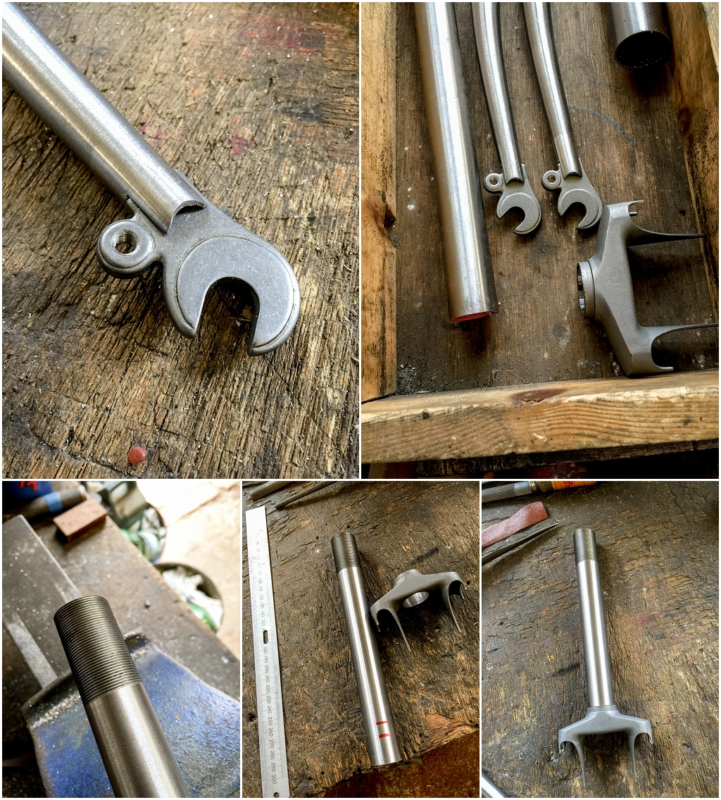 Dave Yates Frame Building Course Day 5 Forks Shotblasted